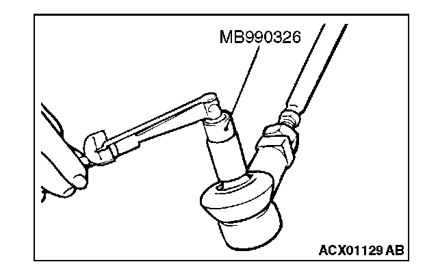 4. Move the ball joint stud several times and install the nut on the stud. Using special tool MB990326, measure the ball joint breakaway torque.