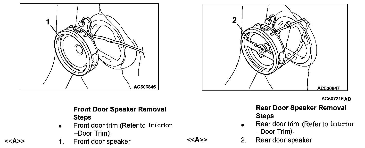 <> REMOVAL OF FRONT DOOR SPEAKER AND REAR DOOR SPEAKER