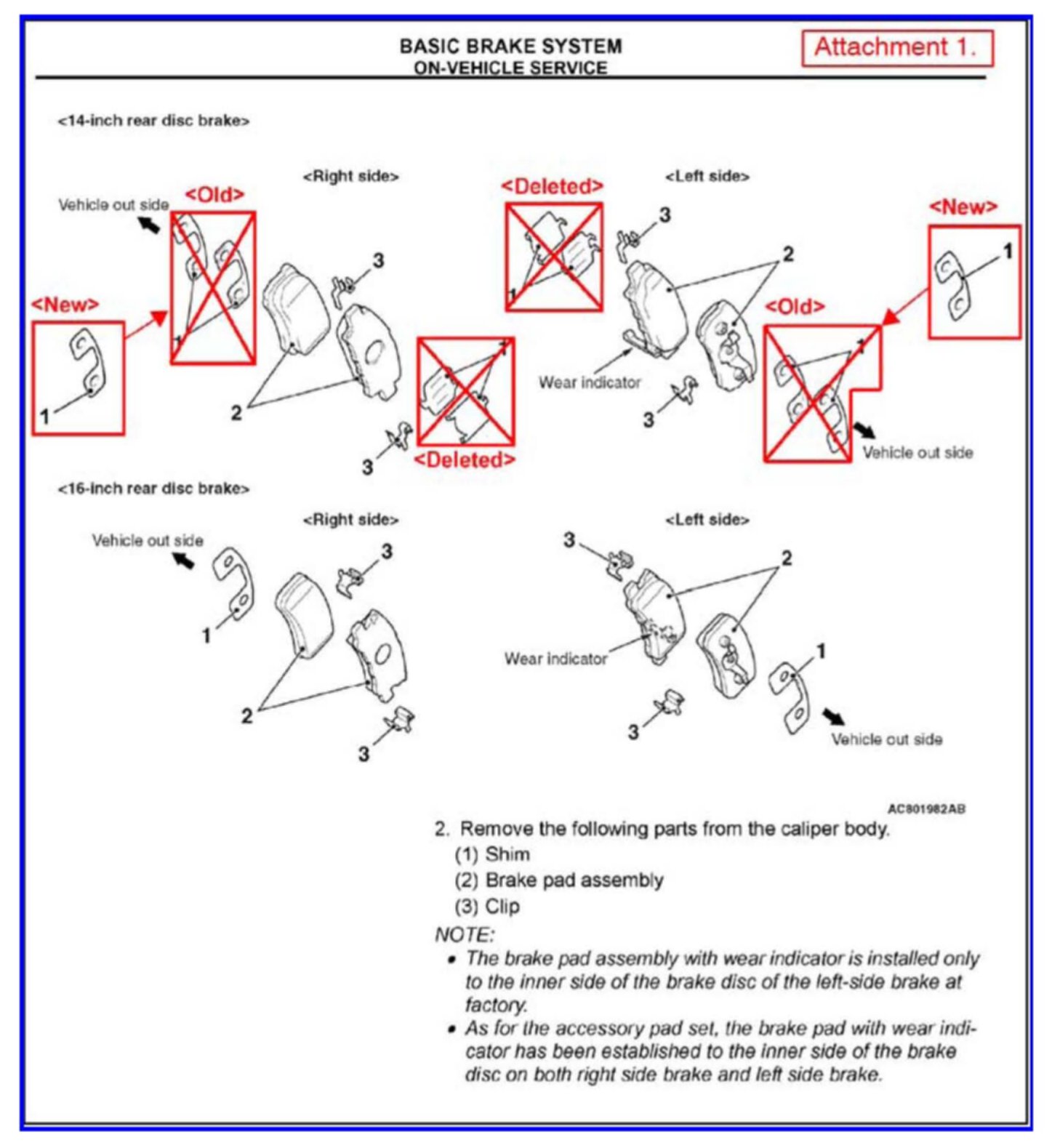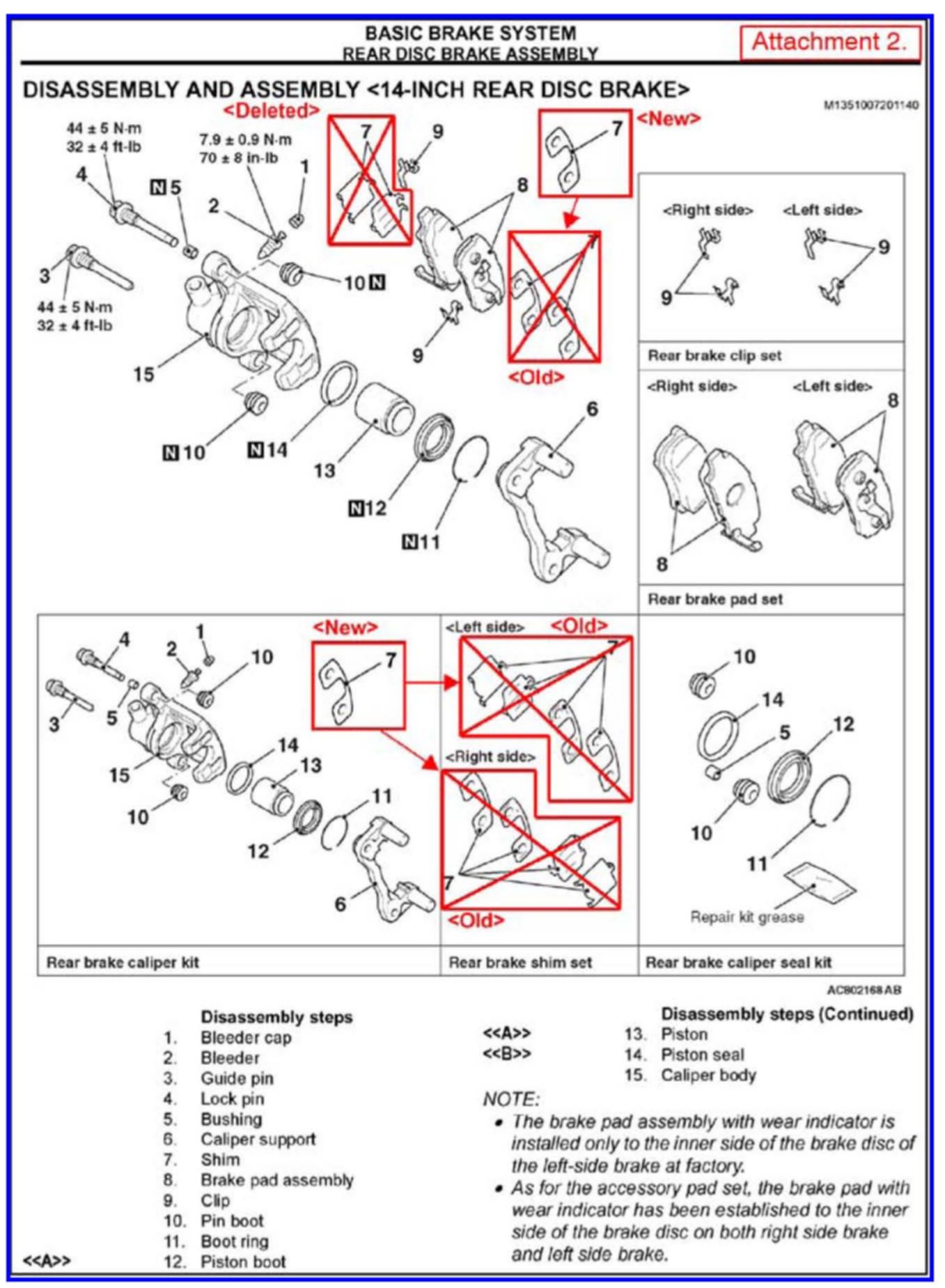NUMBER OF REAR DISC BRAKE SHIMS REDUCED - SERVICE MANUAL REVISION