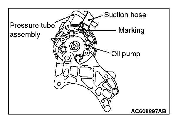 Install the suction hose so that the marking is positioned toward vehicle left side as shown in the illustration.