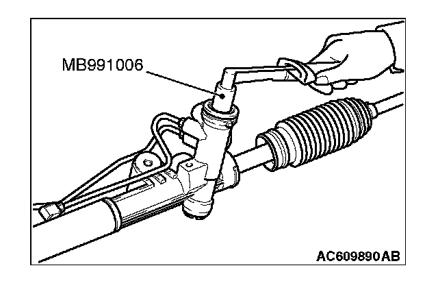 1. Using the special tool preload socket (MB991006) to rotate the pinion at a rate of one turn per 4 to 6 seconds, and then measure the pinion total rotation torque.