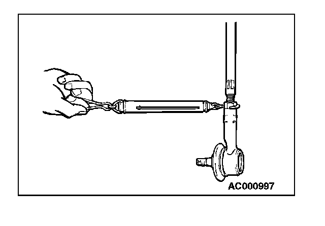 2. Measure the oscillating resistance (oscillating torque) using a spring scale as shown in the figure with the tie-rod end facing downward.