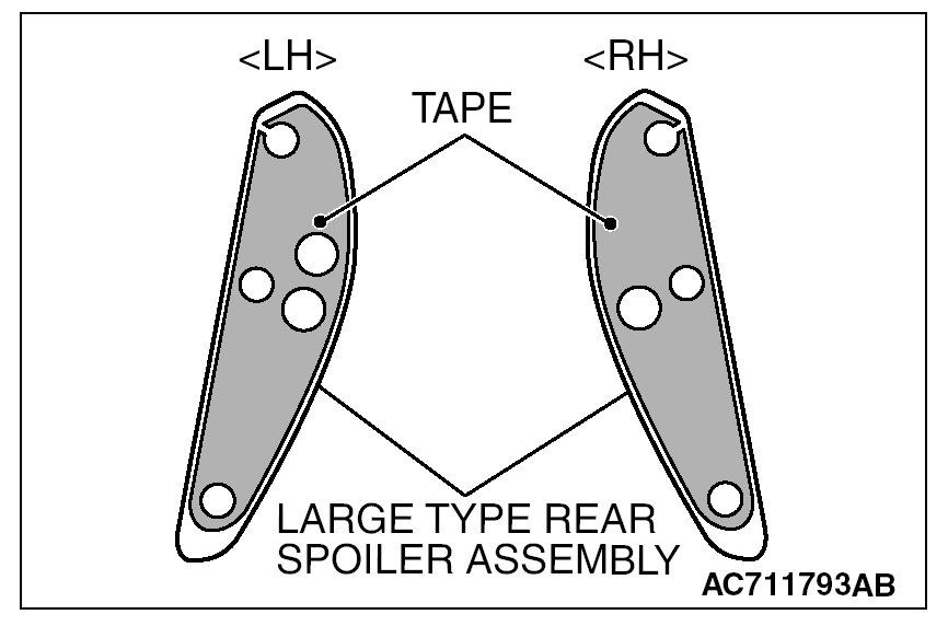 1. To protect the body (paint surface), apply cloth tape to all body areas around the installed large type rear spoiler assembly.