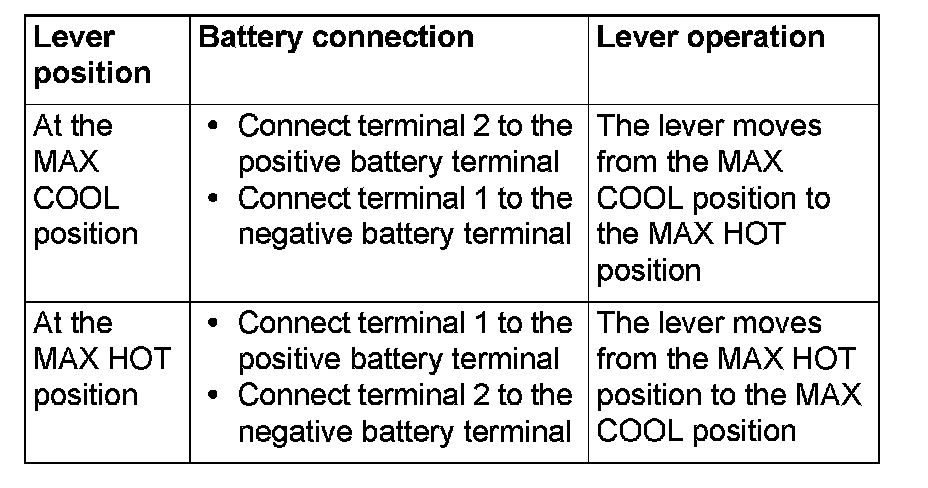 CAUTION: Do not apply battery voltage when the damper is in the MAX COOL or MAX HOT position.