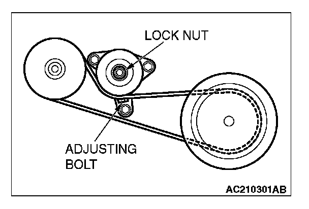 POWER STEERING DRIVE BELT TENSION ADJUSTMENT [3.8L ENGINE]If the vibration frequency, tension or deflection is outside the standard value, adjust by the following procedure.