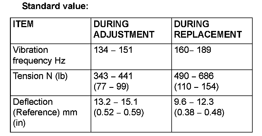 6. When the belt tension is adjusted by measuring the belt deflection, adjust it with a tool for vibration frequency measurement or tension measurement afterward.