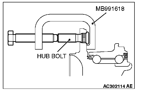2. Use special tool MB991618 to remove the hub bolts.