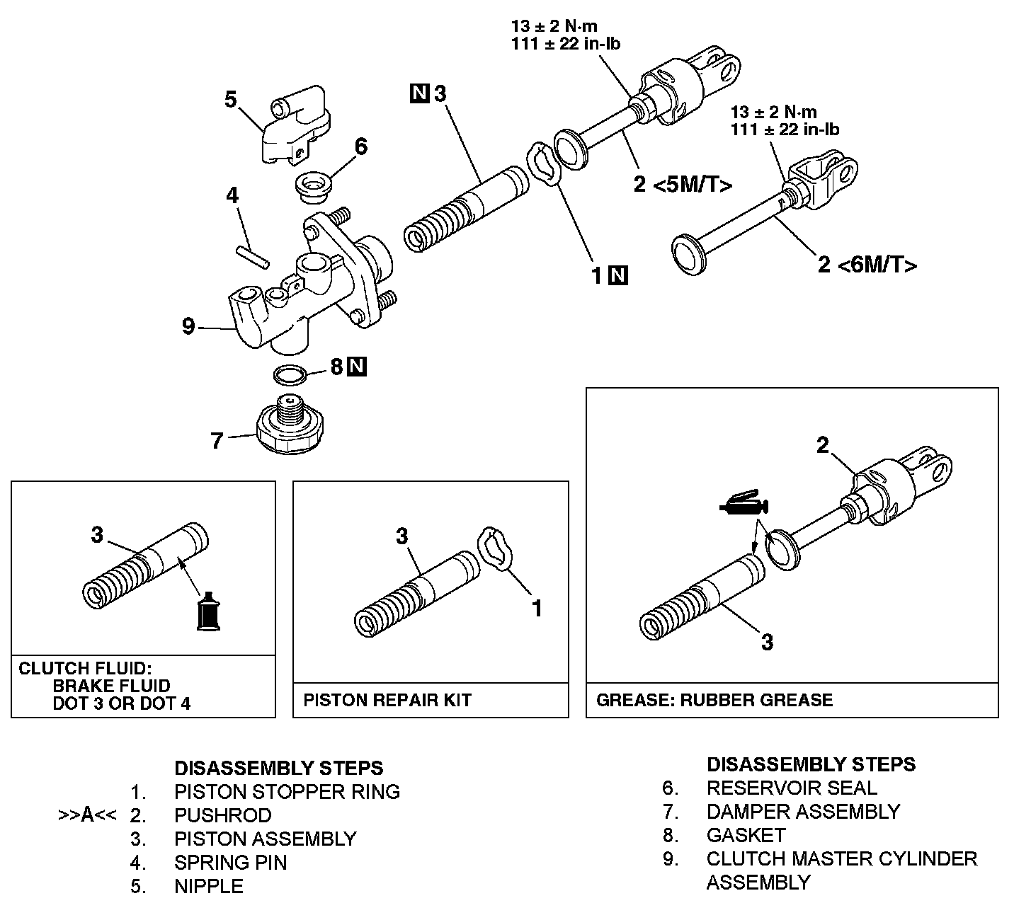 CLUTCH MASTER CYLINDERDISASSEMBLY AND ASSEMBLY