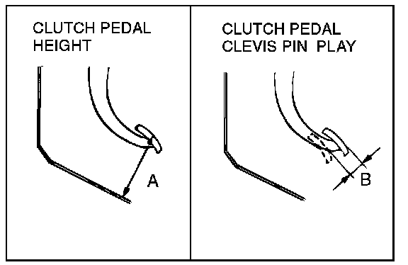 3. Measure the clutch pedal clevis pin play. If the play is outside the standard value, go to Step 5.