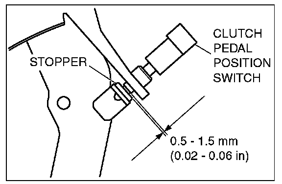 Install the clutch pedal position switch so that the clearance between the stopper and switch is as shown when the clutch pedal is not depressed.