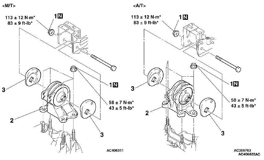 *: Indicates parts which should be initially tightened, and then fully tightened after placing the vehicle horizontally and loading the full weight of the engine on the vehicle body.