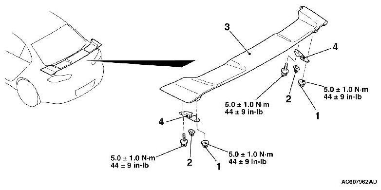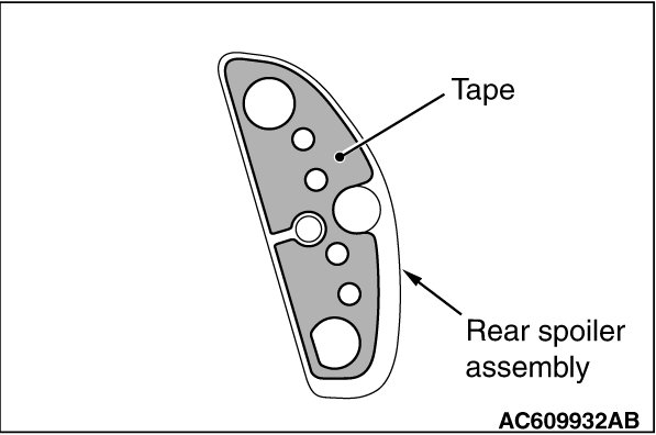 (2) Remove backing paper from the tape, and apply it to the rear spoiler assembly.