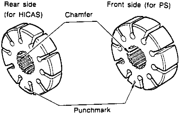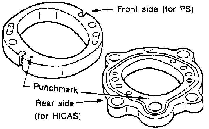 4. Cam ring shape is different between front and rear, ensure front side cam ring is installed with punch mark set on pulley side and that rear side cam ring is installed with punch mark set on rear housing side, Fig. 8.