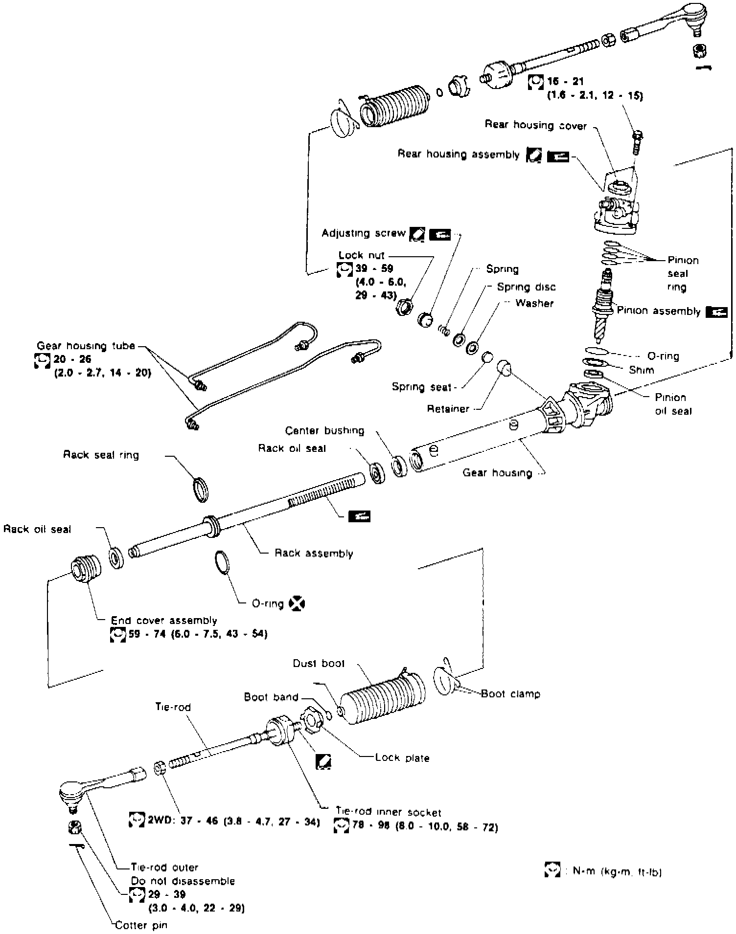 1. Before disassembling, measure pinion rotating torque and record, then drain fluid.