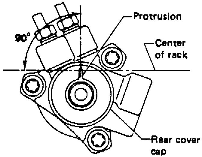 3. Install center bushing and rack oil seal with rack assembly, then tighten cylinder end cover to specifications. Stake housing to secure end cover.