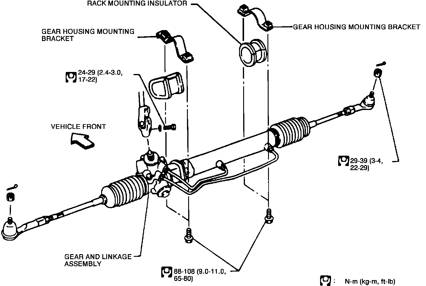 Refer to Fig. 6 for power steering gear replacement procedure, noting the following.