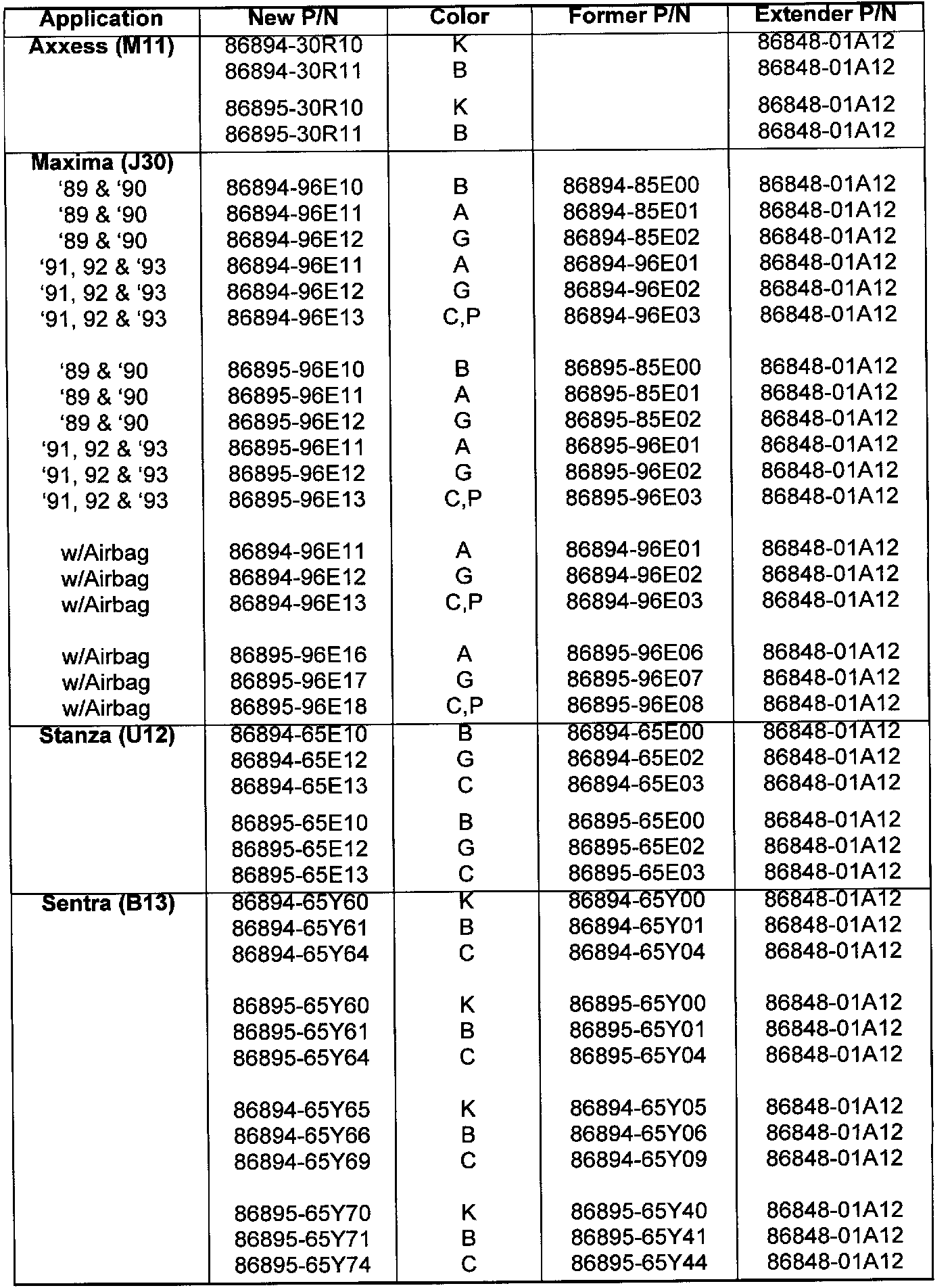 This bulletin provides a listing of part numbers and applications for Seat Belt Extenders. The Seat Belt Extenders are intended for use by customers who cannot fit the standard seat belts around them.