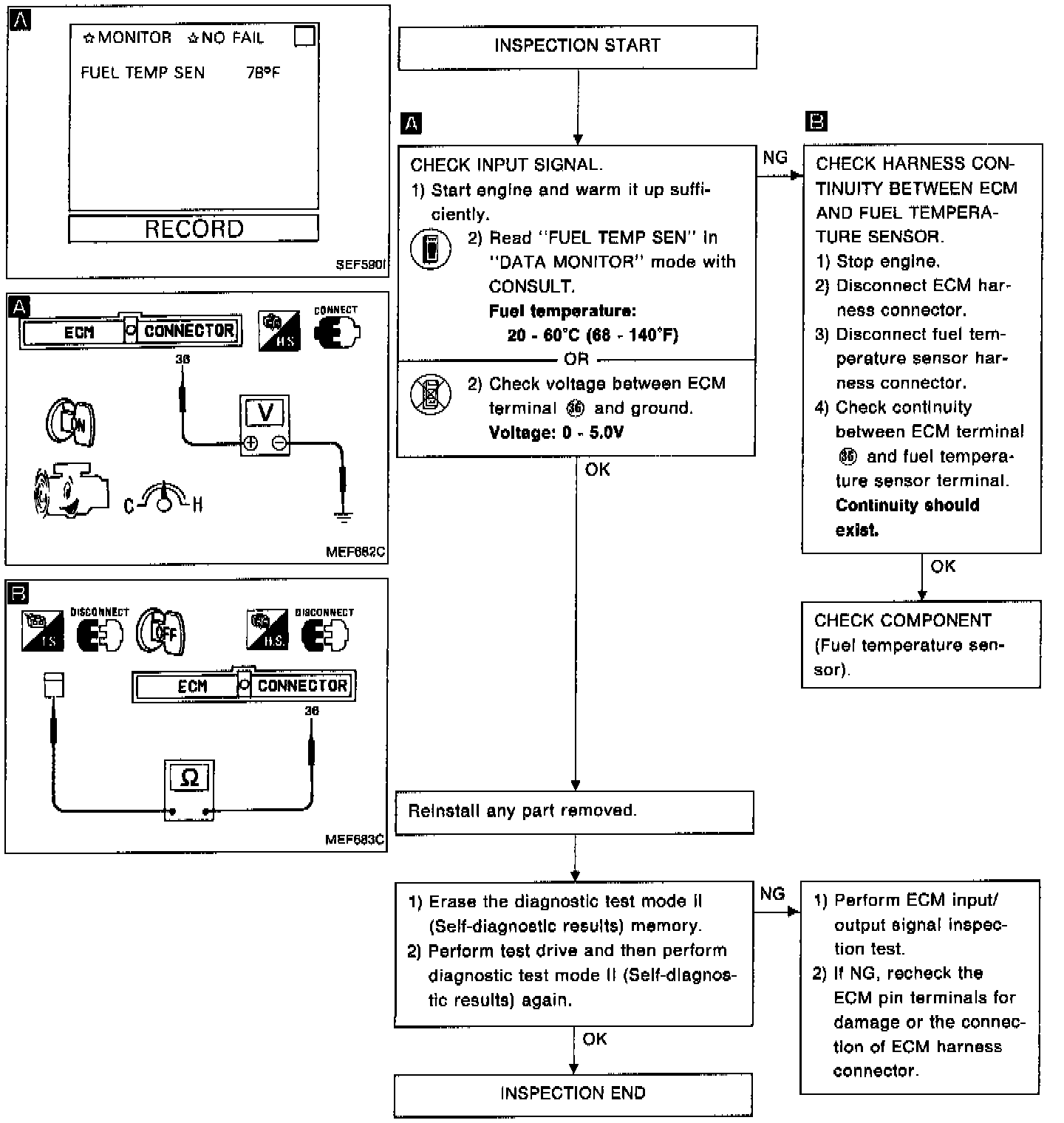 DTC 42 Fuel Temperature Sensor Diagnostic Chart: