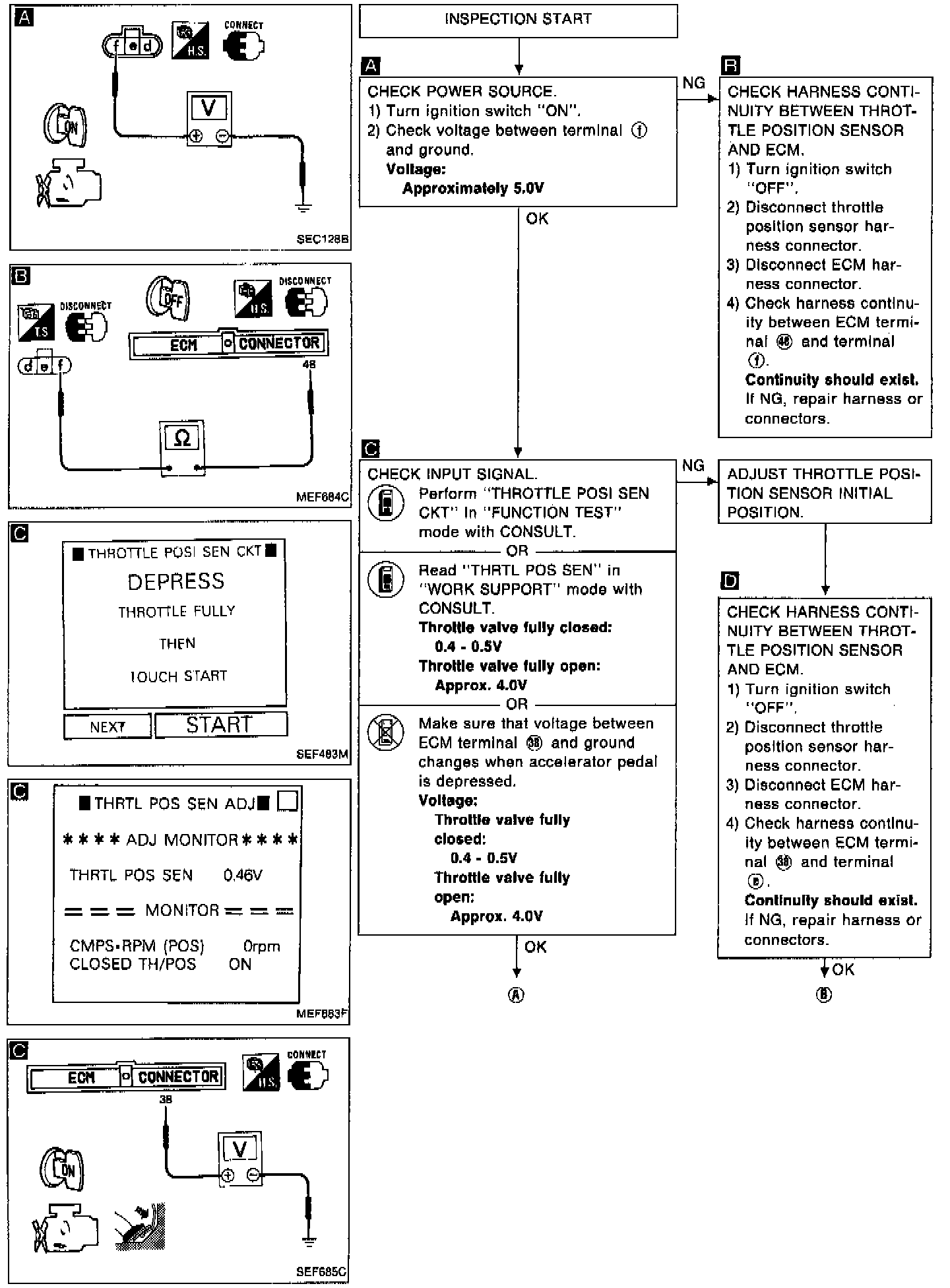 DTC 43 Throttle Sensor Diagnostic Chart: