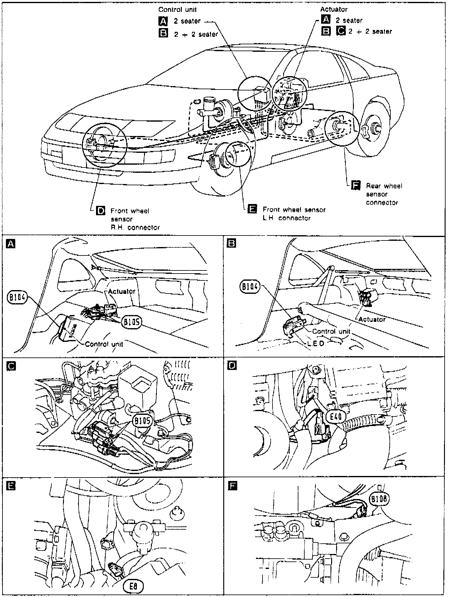 Fig. 225 ABS System Component & Harness Connector Locations: