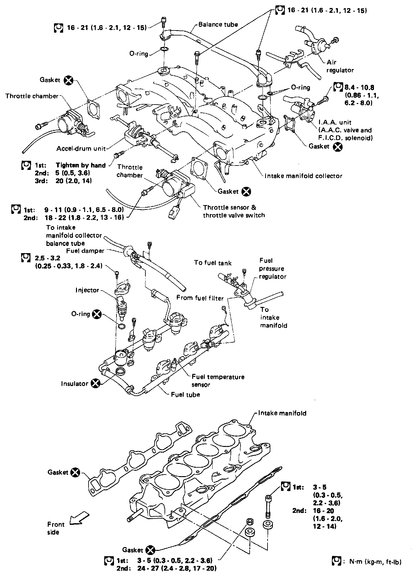 2. Remove intake manifold collector, then the injector pipe assembly.