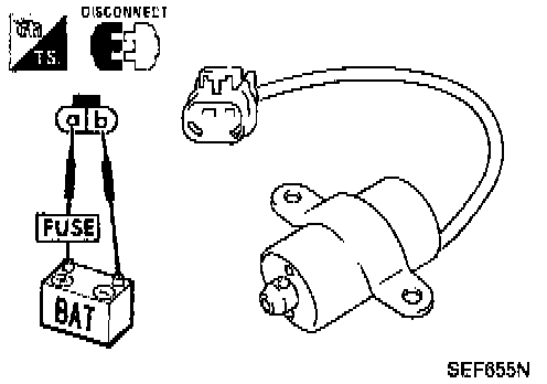 ^ Check valve timing control solenoid valve for normal operation by supplying it with battery voltage between terminals "a" and "b".