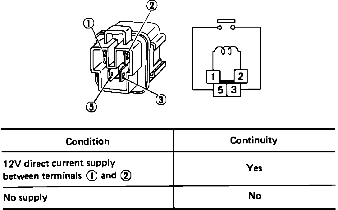 Apply voltage to the terminals as shown and check for continuity as shown.
