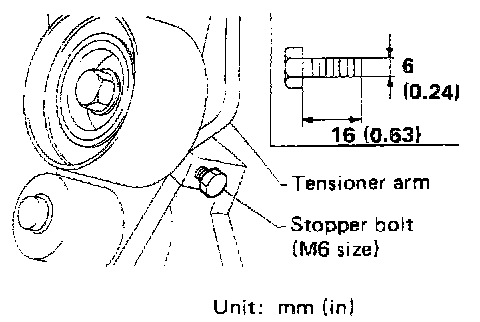 NOTE: When adjusting clearance, do not push tensioner arm with stopper bolt fitted because it will damage thread portion of stopper bolt.