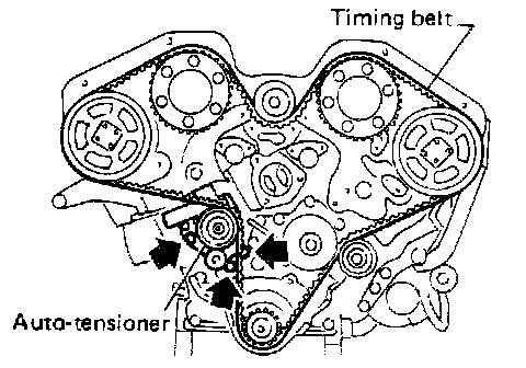 b. After removing timing belt, do not turn crankshaft and camshaft separately because valves will strike piston heads.