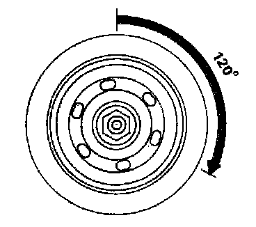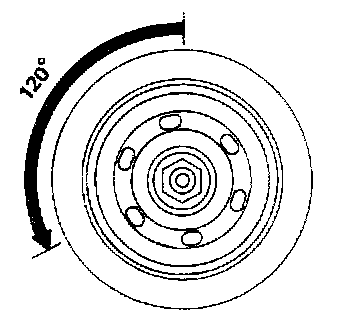 13. Turn crankshaft 120° counterclockwise and set No. 1 cylinder at T.D.C. on its compression stroke.