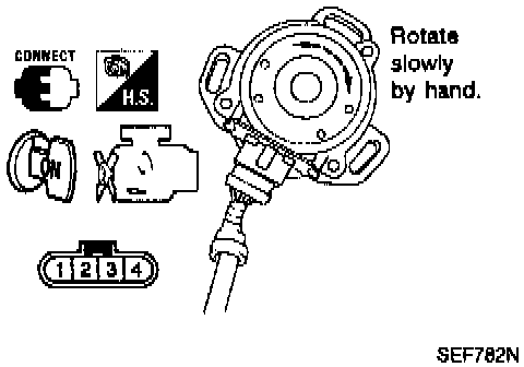 4. Using a volt meter, check voltage between terminal 2 and ground while rotating it slowly. Should fluctuate between 5.0 and 0.0 Volts DC.