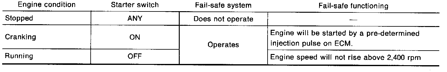The fail-safe system makes engine starting possible if there is something malfunctioning in the Engine Control Unit's (ECM's) Central Processing Unit (CPU) circuit.