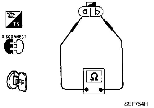 3. Check continuity between terminals "a" and "b" while rotating rear wheel by hand.