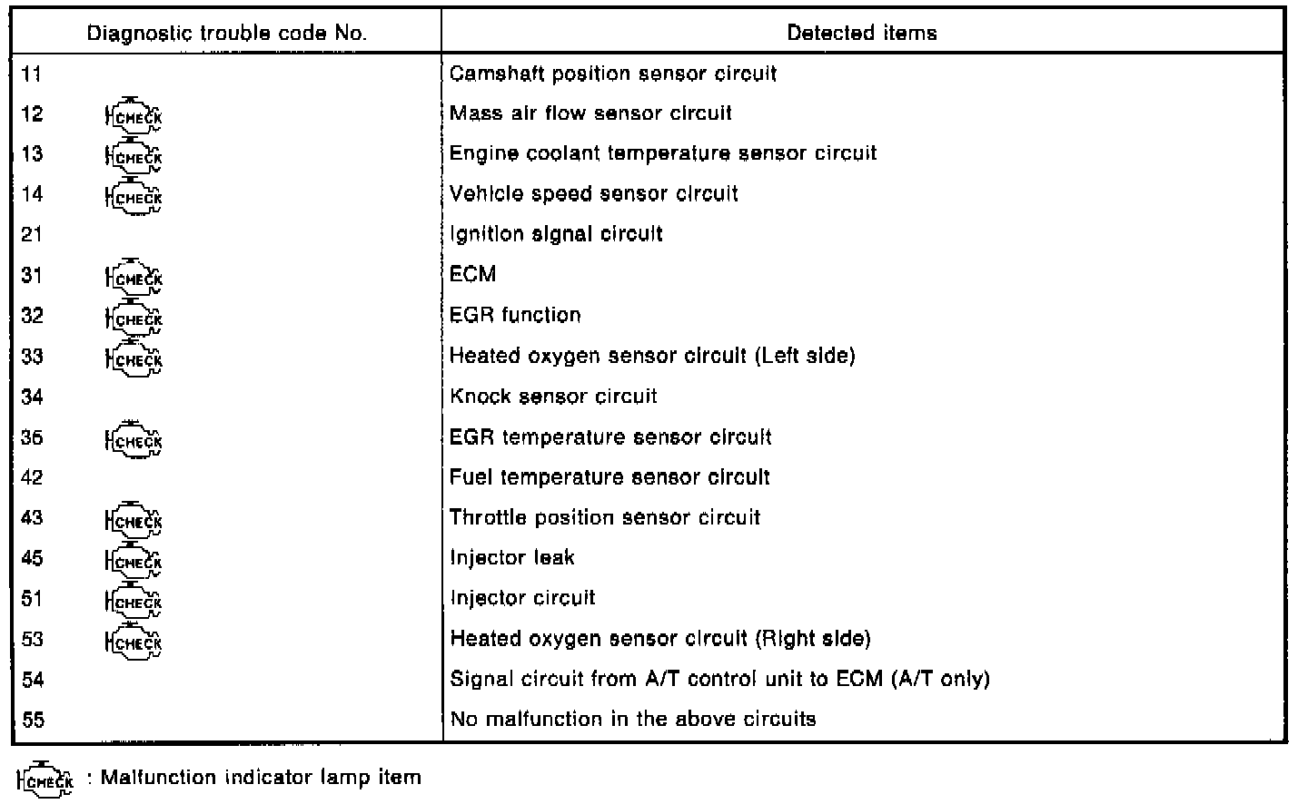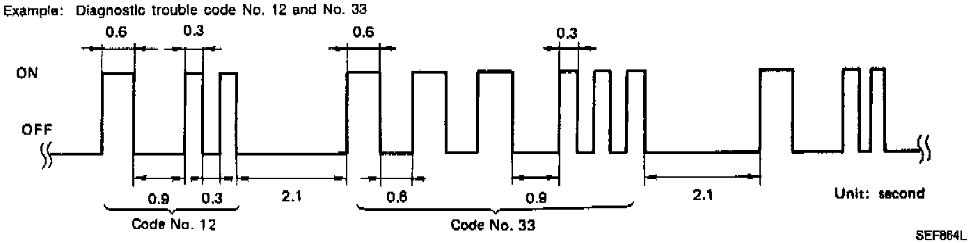 In this mode, a diagnostic trouble code is indicated by the number of flashes from the RED LED or the MALFUNCTION INDICATOR LAMP as shown below: