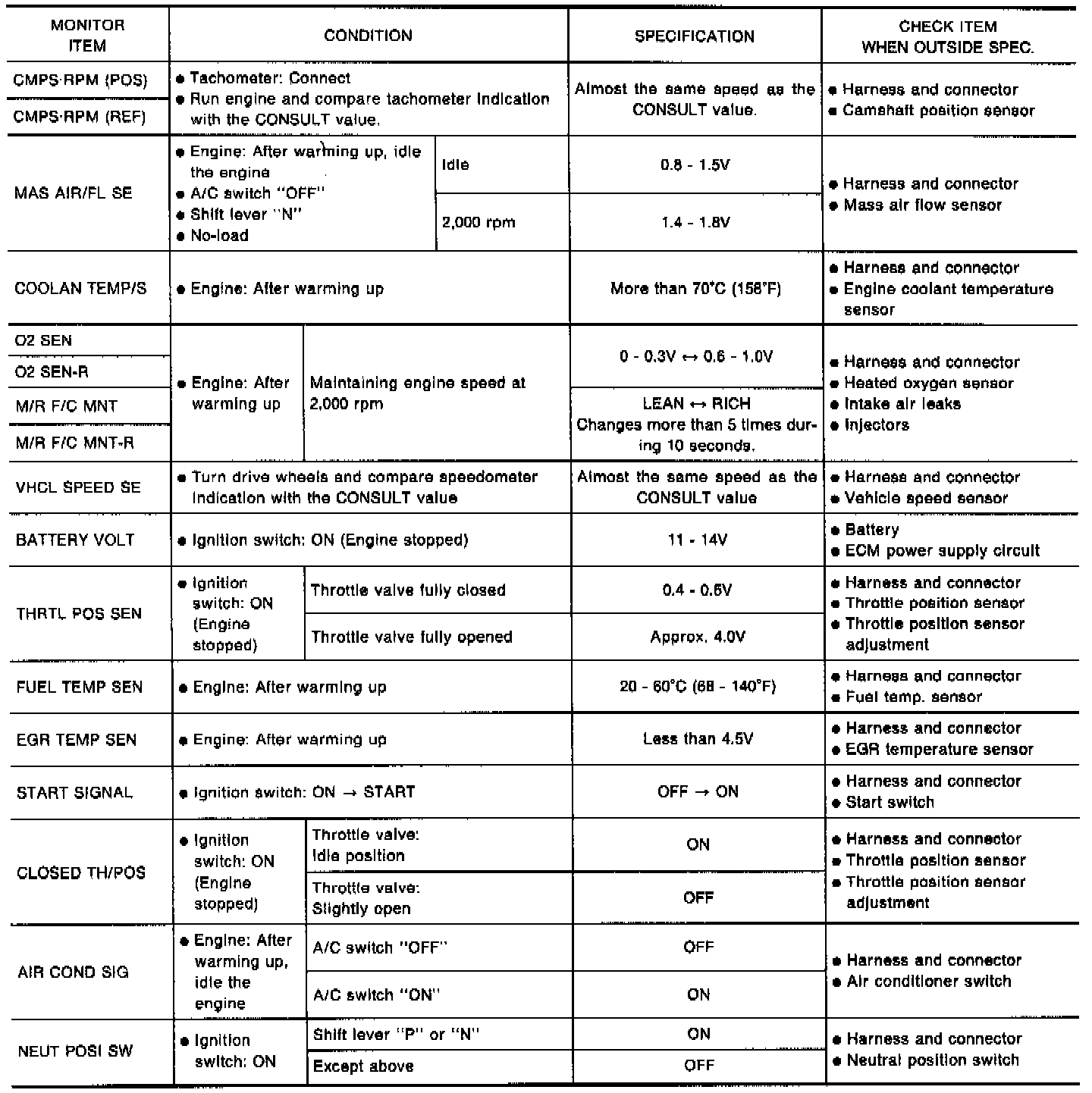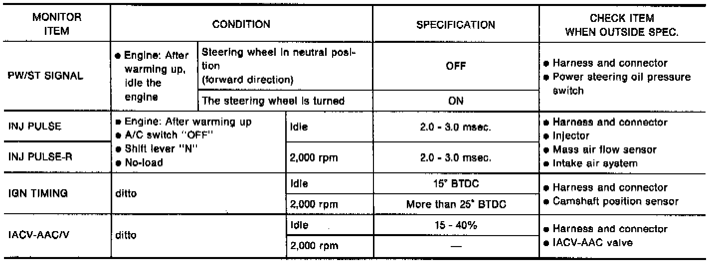 ^ Specification data are out-put/in-put values which are detected or supplied by Engine Control Module at the connector.