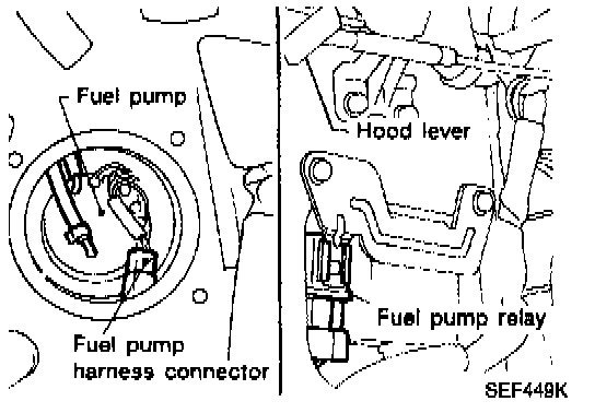 4. Turn ignition switch off and reconnect fuel pump relay or fuel pump connector.
