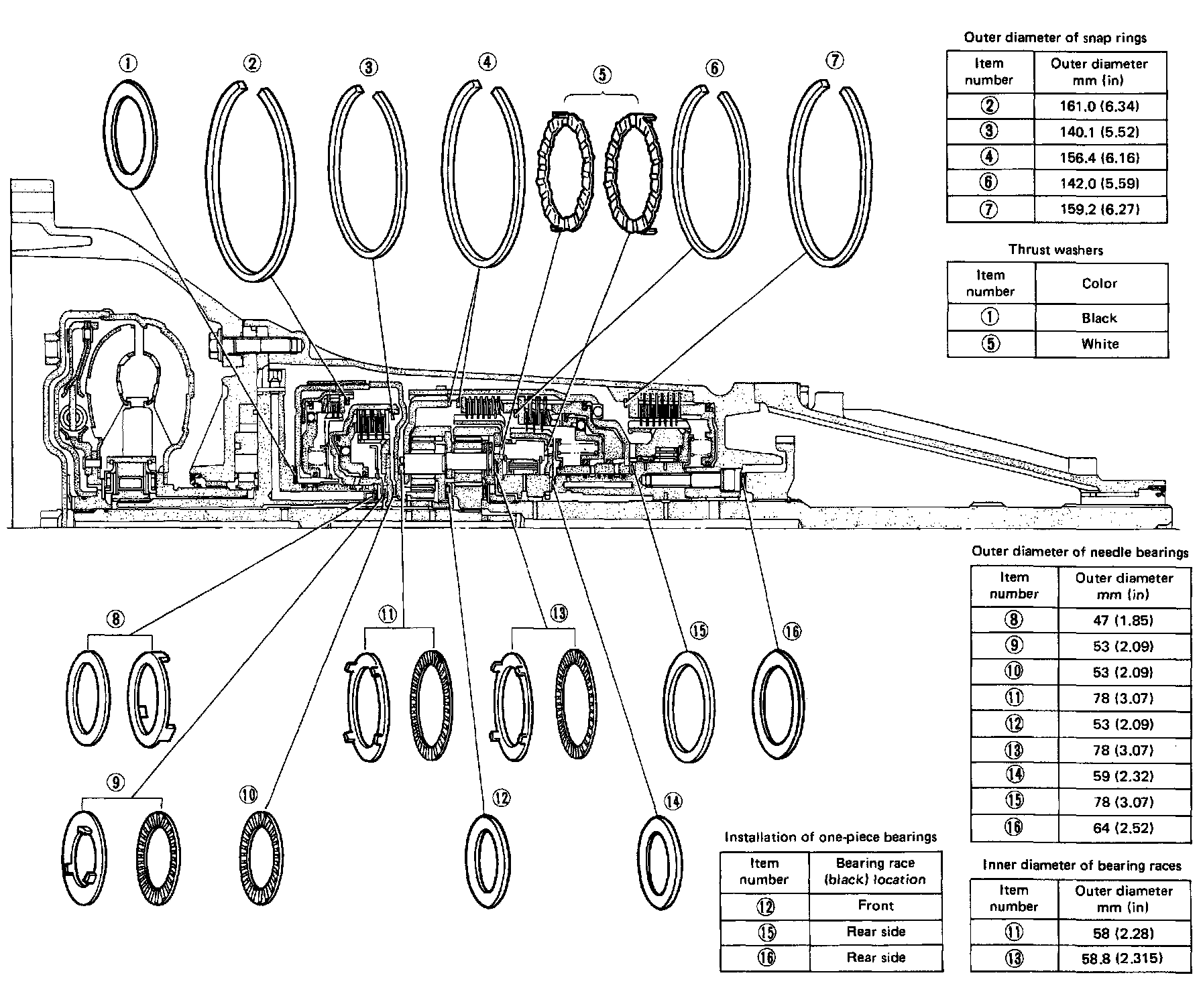 Locations of Needle Bearings, Thrust Washers and Snap Rings