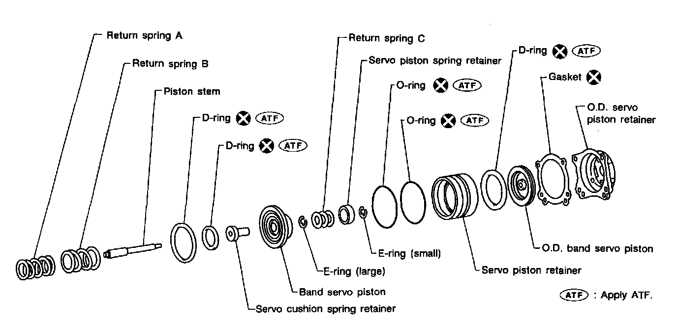 5. Install servo piston spring retainer, return spring C and piston stem onto band servo piston.