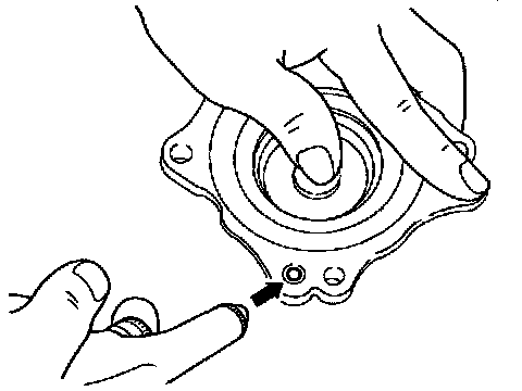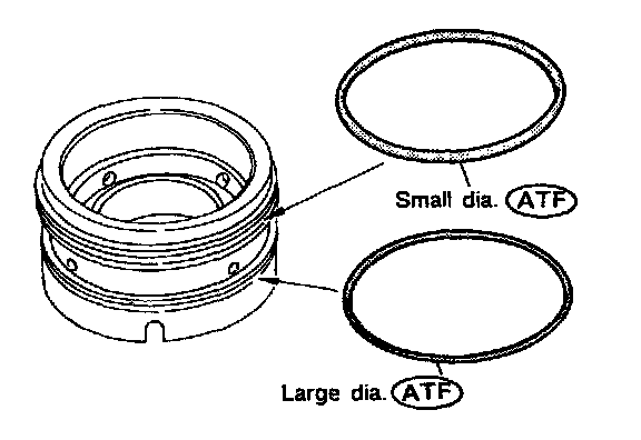 2. Apply compressed air to the other oil hole in piston retainer to remove OD band servo piston from retainer.