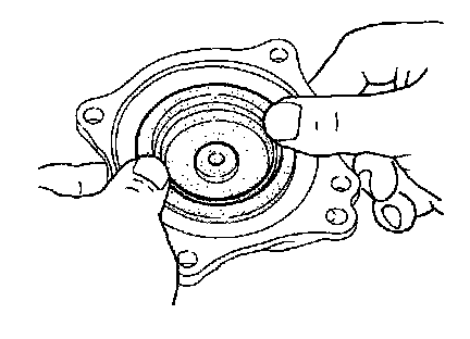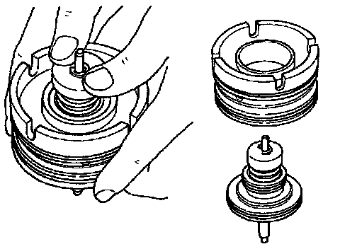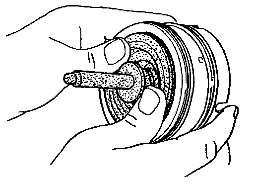 6. Place piston stem end on a wooden block. While pushing servo piston spring retainer down, install E-ring.
