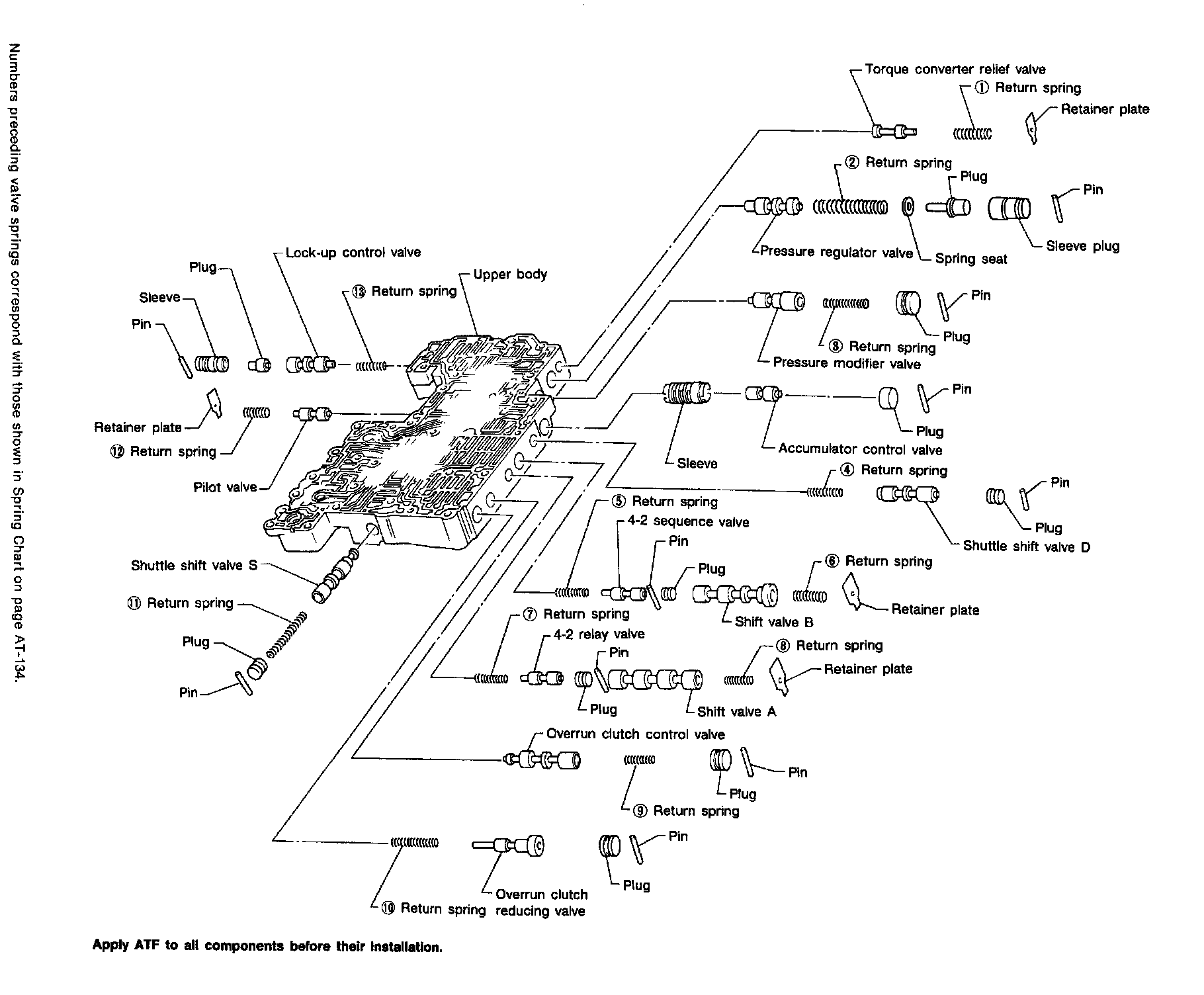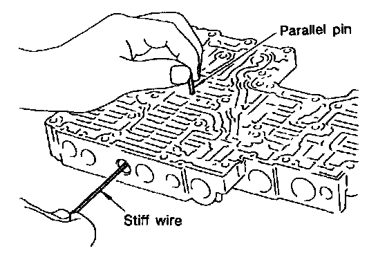^ 4-2 sequence valve and relay valve are located far back in upper body. If they are hard to remove, carefully push them out using stiff wire.