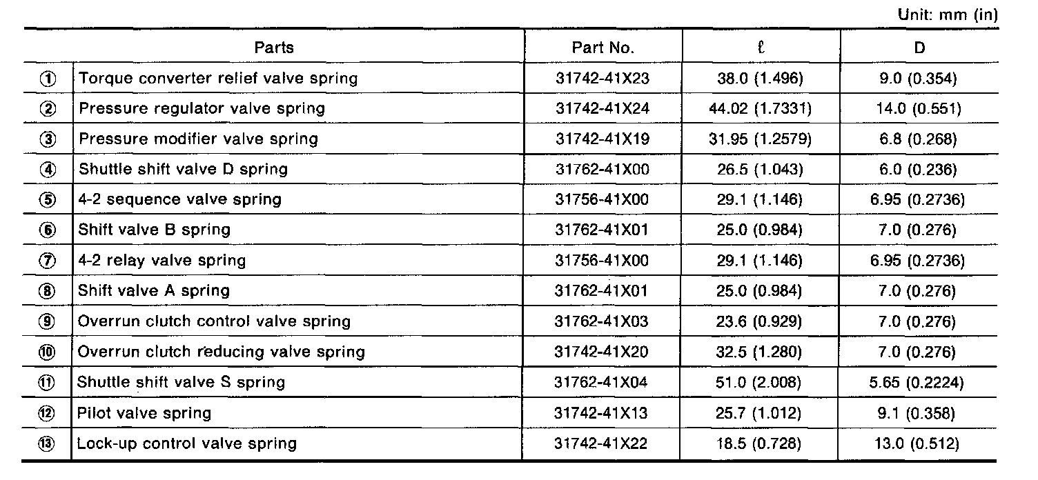 ^ Measure free length and outer diameter of each valve spring. Also check for damage or deformation.