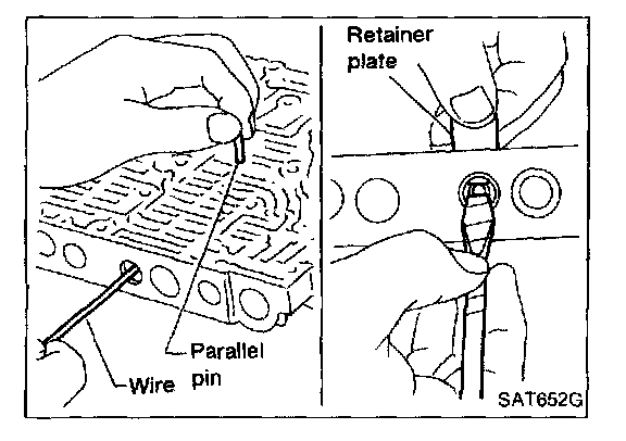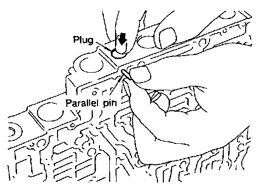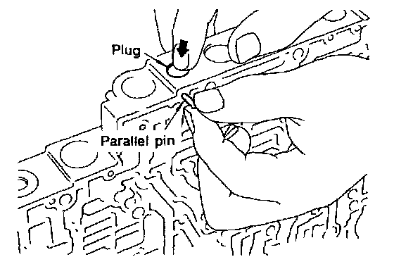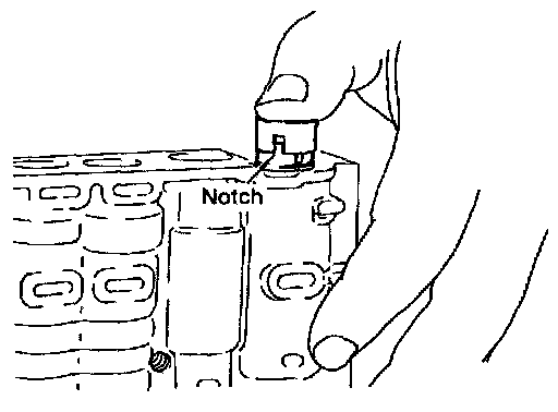 ^ Align parallel pin groove in plug with parallel pin, and install accumulator control valve.