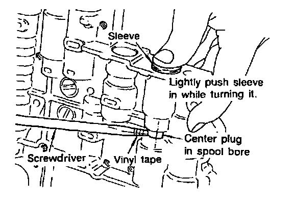 ^ If pressure regulator plug is not centered properly, sleeve cannot be inserted into bore in upper body.