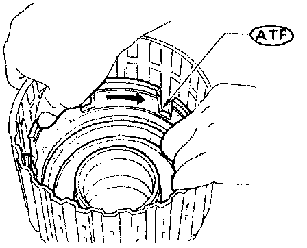 ^ Apply ATF to inner surface of clutch drum.