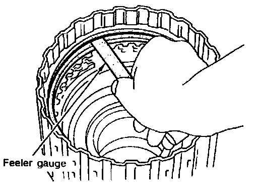 ^ Measurement of clearance between retaining plate and snap ring of overrun clutch