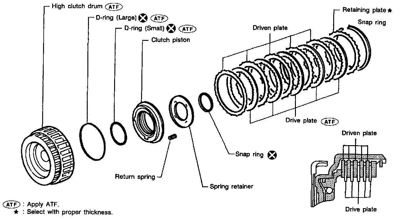 Service procedures for high clutch are essentially the same as those for reverse clutch, with the following exception: