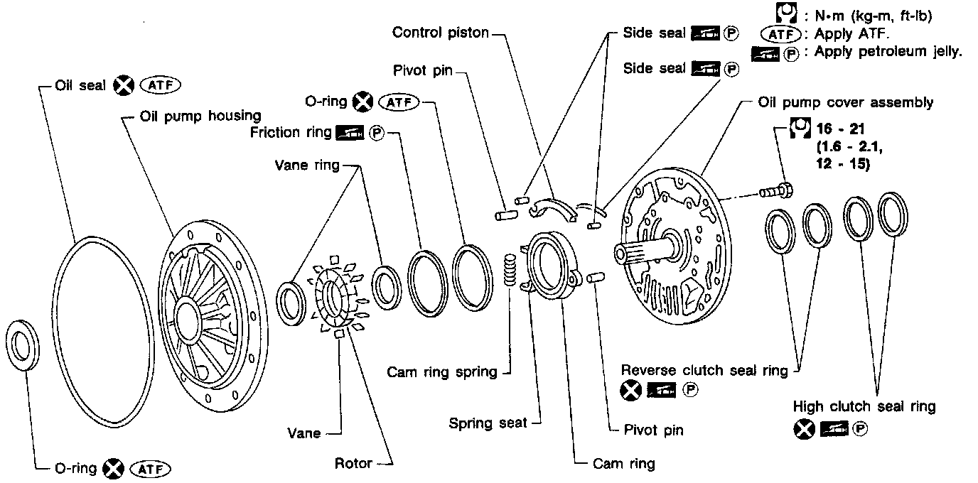 ^ Before measuring side clearance, check that friction rings, O-ring, control piston side seals and cam ring spring are removed.