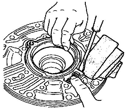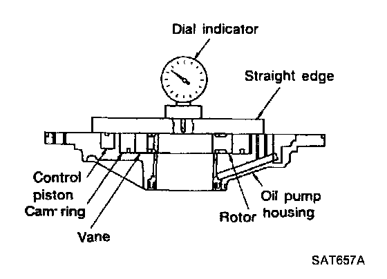 ^ Measure side clearances between end of oil pump housing and cam ring, rotor, vanes and control piston in at least four places along their circumferences. Maximum measured values should be within specified position.