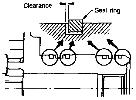 5. Install seal rings carefully after packing ring grooves with petroleum jelly. Press rings down into jelly to a close fit.